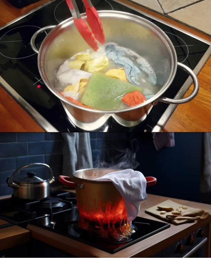 Tot slot raad ik aan om de doeken en ingrediënten in de pan te doen voordat je hem met water vult, anders kan het lekken.