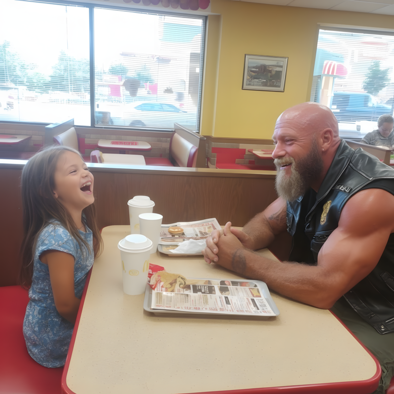 Lang, breedgeschouderd, zijn armen bedekt met tatoeages, zijn gezicht getekend door littekens en zijn leren vest vol symbolen die de meeste mensen niet herkenden. Ouders in de McDonald’s-eetzaal fluisterden als hij binnenkwam. De manager fronste telkens als hij eten bestelde. Zelfs andere klanten hielden afstand, ervan overtuigd dat hij gevaarlijk was.