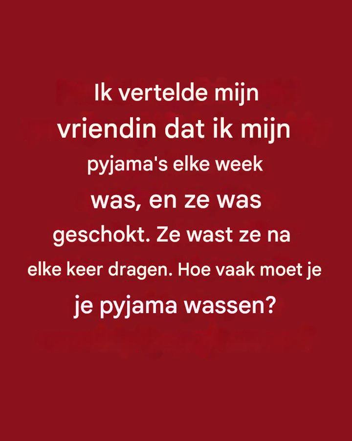 Verschillende factoren kunnen bijdragen aan hoe vaak je je pyjama moet wassen. Denk bijvoorbeeld aan hoeveel je ‘s nachts zweet, of je doucht voor het slapengaan, het materiaal van je pyjama en zelfs het klimaat waarin je leeft. Iemand die bijvoorbeeld in een warme, vochtige omgeving woont, wast zijn pyjama waarschijnlijk eerder dan iemand die in een kouder klimaat woont. Als je allergieën hebt of gevoelig bent voor deze chemicaliën, kan het nodig zijn om je pyjama vaker te wassen om irritatie te voorkomen.