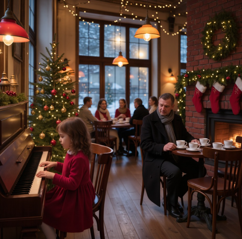Toen het laatste briefje werd uitgegeven, realiseerde Daniel zich dat hij was opgestaan. Zijn koffie was vergeten. Met bonzend hart liep hij naar de piano. Het kleine meisje glimlachte om het verlegen applaus en nam een slok warme chocolademelk.