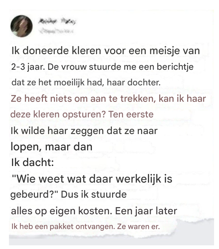 « Mijn dochter heeft bijna geen kleren. We maken een moeilijke tijd door. Of… Zou je ze nog steeds sturen? »