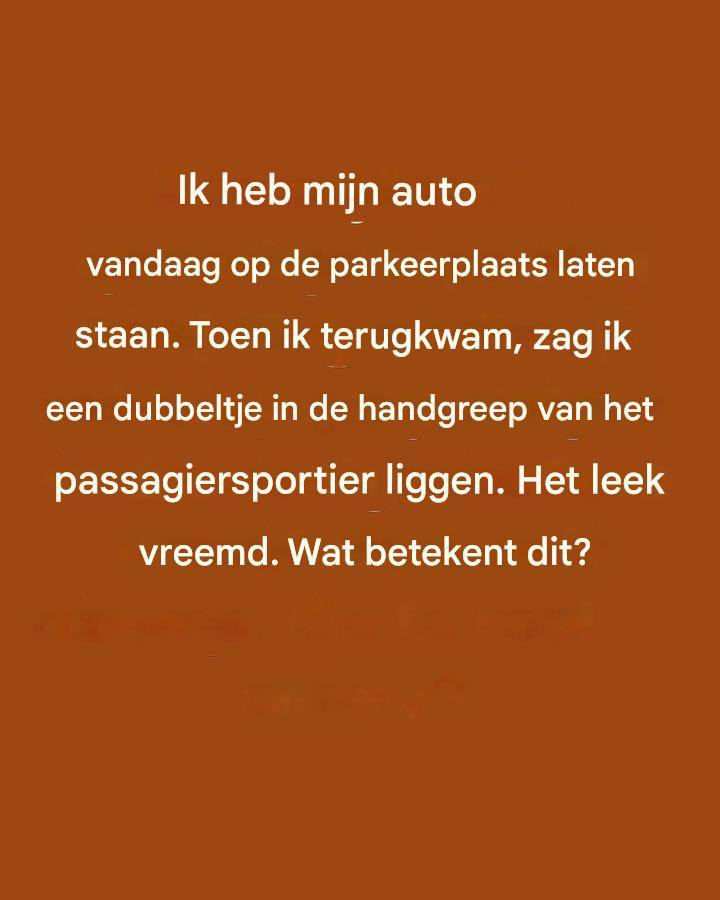 Terugkerend naar de parkeerplaats, een kleine oplossing: het voorwerp in de deurgreep van de passagiersdeur steken. Bij nadere inspectie zag ik dat het een muntje van één cent was, perfect passend in de deurgreep. Deze merkwaardige betekenis riep meteen de vraag op: waarom zou iemand daar een muntje van één cent in stoppen?