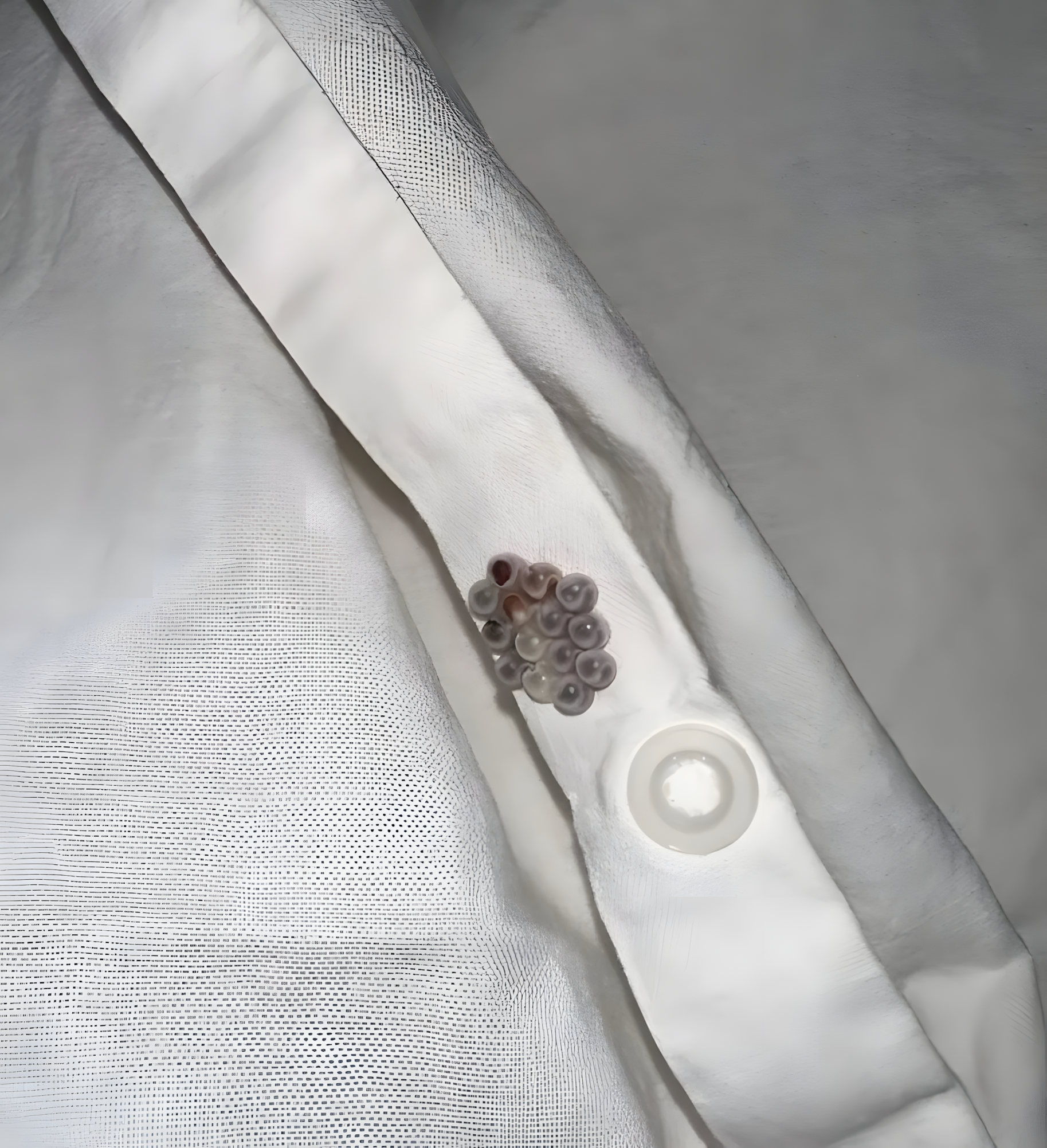 Ik dacht meteen dat het insecteneieren waren. Zo klein en netjes gerangschikt, alsof iemand ze daar bewust heeft neergezet.