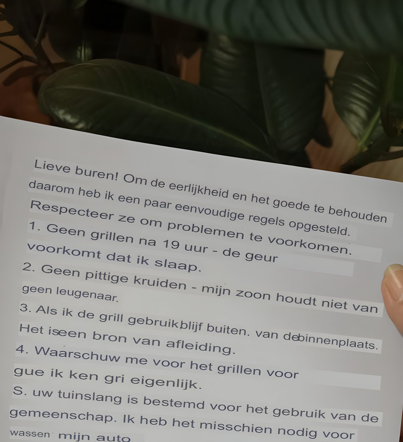 Ik vroeg mijn buurvrouw om op te ruimen nadat ik mijn barbecue had gebruikt. De volgende dag plakte ze mijn huisregels op mijn deur en vroeg me om ze te respecteren.