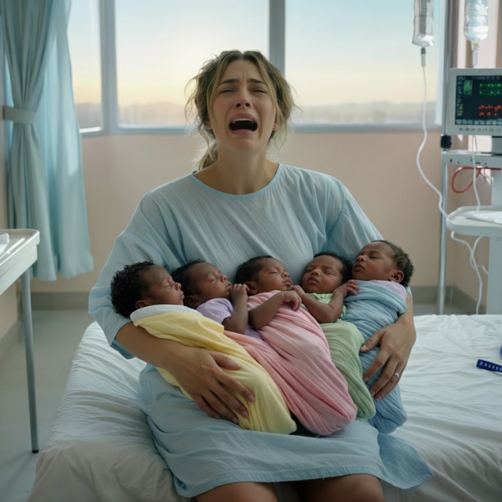 De kraamafdeling was gevuld met lawaai – vijf kleine stemmetjes die tegelijk riepen. De uitgeputte jonge moeder glimlachte door haar tranen heen terwijl ze naar haar vijfling keek. Ze waren klein, fragiel, maar perfect.