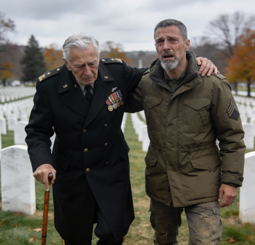 Kapitein David Hargrave stond stijf bij de kist die in de Amerikaanse vlag was gehuld, zijn kaak zo gespannen dat hij een kies zou spleten. De wind, scherp en meedogenloos, raasde door de eindeloze rijen witte stenen en droeg de geur van bevroren aarde en dode bladeren mee. De stilte die volgde op het geratel was verstikkend, een zware deken van falen en vernedering daalde neer op deze heilige grond.