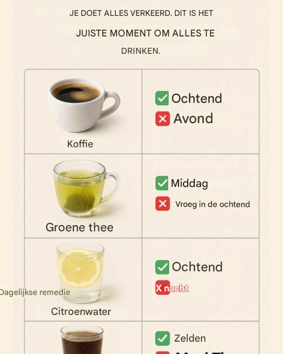 ✅ Beste tijd: Ochtend – Uitstekend voor de spijsvertering en ontgifting na het wakker worden.