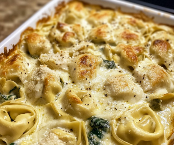 Het is een doordeweekse maaltijd die heerlijk en aantrekkelijk voor het publiek aanvoelt, met kortere ingrediënten zoals bevroren tortellini en een gevulde Alfredo om tijd te besparen zonder in te leveren op smaak. Een snel mix-and-bak-gerecht dat minimale voorbereiding vereist en maximale comfort biedt.