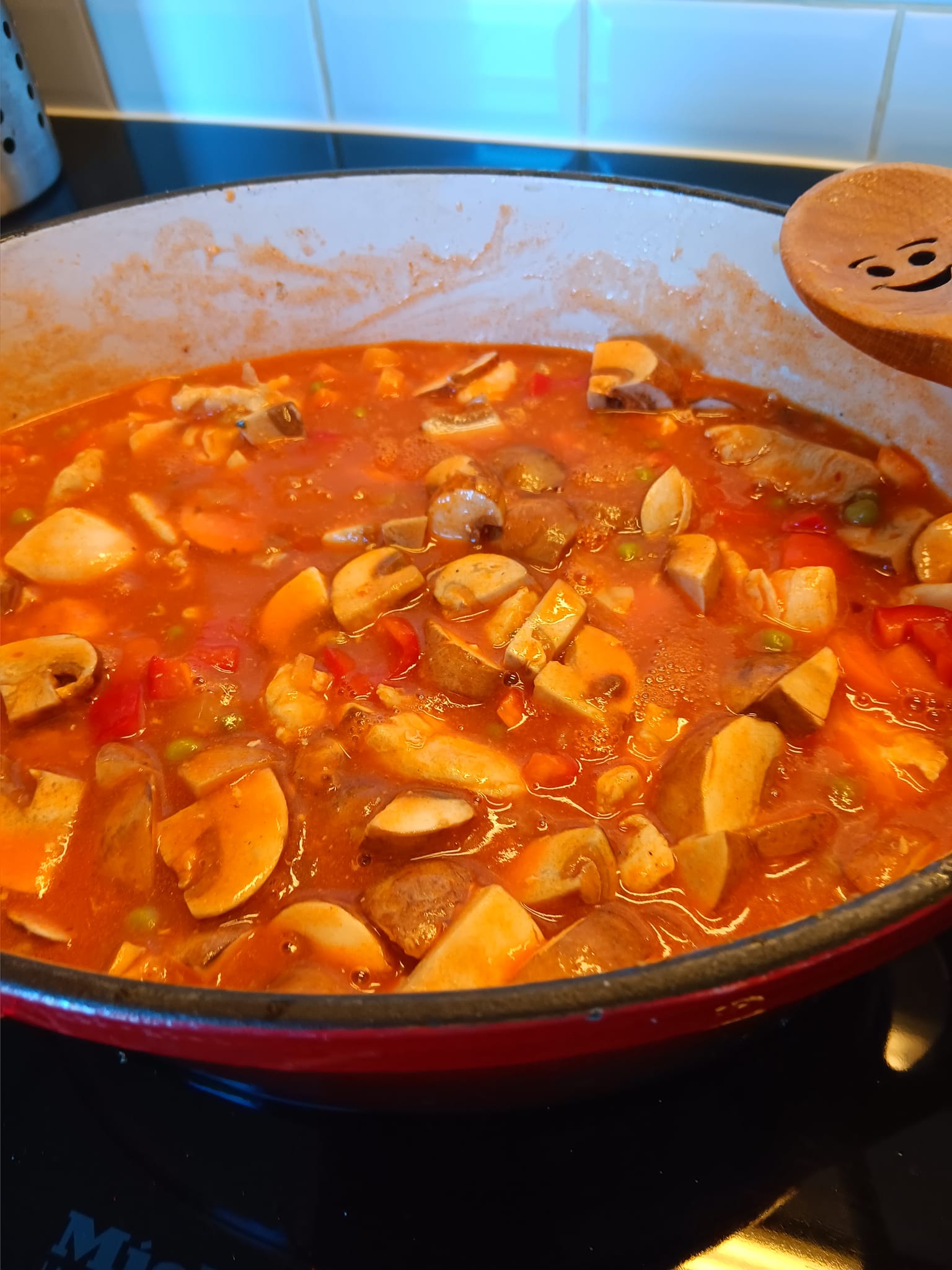 • 2 paprika’s, in blokjes (rood en/of geel)