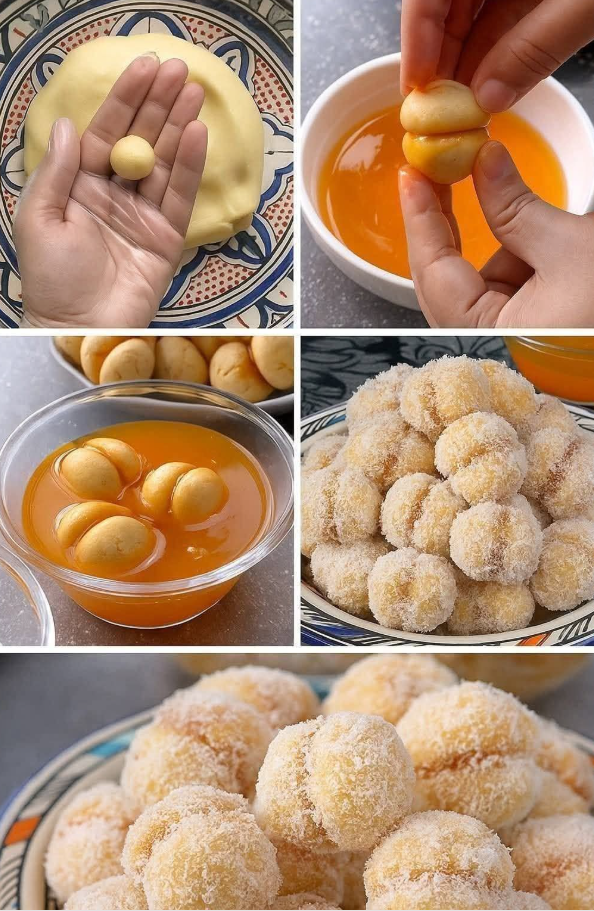 Deze Kokos Sneeuwbal Koekjes zijn onweerstaanbaar zacht, licht krokant aan de buitenkant en heerlijk smeuïg vanbinnen. Ze combineren een subtiele citrustoets met romige kokos en een zoete abrikozenvulling. Dankzij de jam en honing krijgen de koekjes hun typische “sneeuwbal”-uiterlijk en smelten ze letterlijk op je tong.