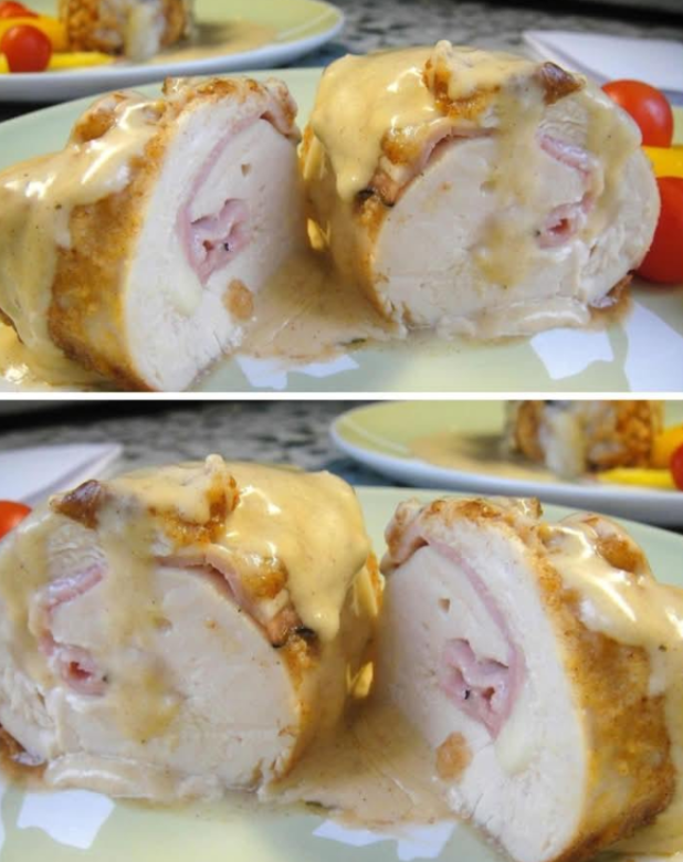 Cordon Bleu kip in roomsaus is een gerecht dat de elegantie van restaurantkeuken combineert met het comfort van een huisgemaakt diner. De naam « Cordon Bleu » zelf wordt geassocieerd met de hoogste culinaire klasse en hoge kookkunst, maar verwijst tegelijkertijd naar een specifieke manier van vleesbereiding: gevuld met ham en kaas, gepaneerd en gefrituurd tot het goudbruin is.