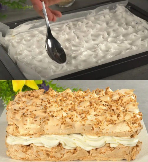 Deze zachte en luchtige cake met een romige topping en licht geroosterde amandelen is een heerlijke traktatie voor elke gelegenheid. Het recept bestaat uit meerdere lagen: een smeuïge basiscake, een royale meringue bovenop en een fluweelzachte room die het geheel perfect afrondt. Door de combinatie van luchtigheid, romigheid en een subtiel krokant laagje is deze cake ideaal voor zowel feestelijke momenten als een rustige middag bij de koffie.