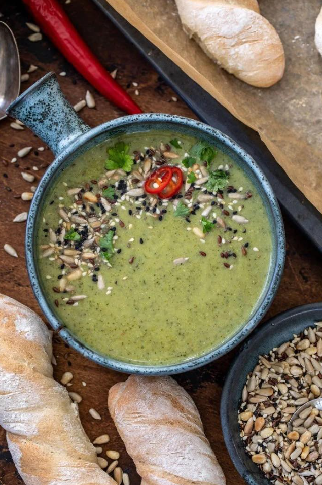 Makkelijke Broccolisoep met Chili en Geroosterde Zaden