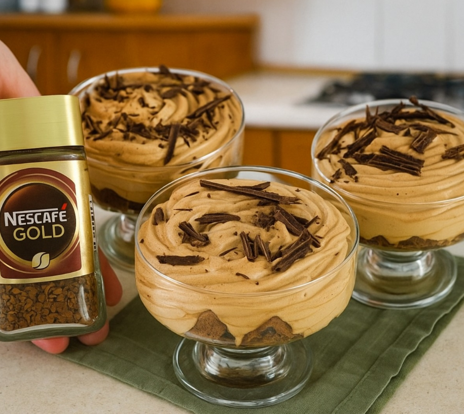 Koffiemousse is een verfijnd, licht dessert vol smaak. Deze snelle en eenvoudige versie, gemaakt met oploskoffie en slagroom, is ideaal voor een geïmproviseerd dinerfeest of om je gasten moeiteloos te imponeren. Versierd met koekjes en chocolade, wordt deze mousse al snel een must-have in je zoete receptenboek.
