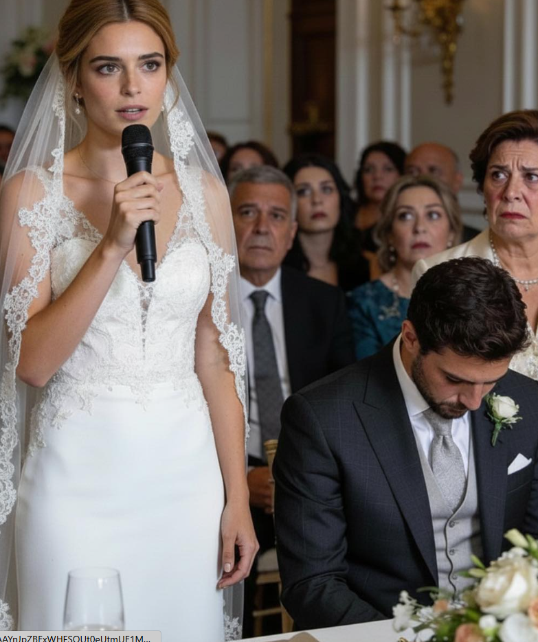 Midden in de bruiloft, toen alles perfect had moeten zijn, pakte mijn schoonmoeder de microfoon en glimlachte voordat ze zei: « Ik ben zo blij dat we een meisje hebben gevonden dat weet hoe ze moet gehoorzamen. » Ze richtte haar ogen op mij, een spottende grijns speelde om haar lippen. Ik glimlachte… Aan de buitenkant. De familie barstte in lachen uit. Mijn man keek nerveus naar beneden, alsof hij al wist wat er ging komen. En op dat moment, met mijn hart bonzend in mijn oren, begreep ik dat ik niet langer stil kon blijven. Dus ik onderbrak de geloften… en onthulde een geheim dat niemand had verwacht.