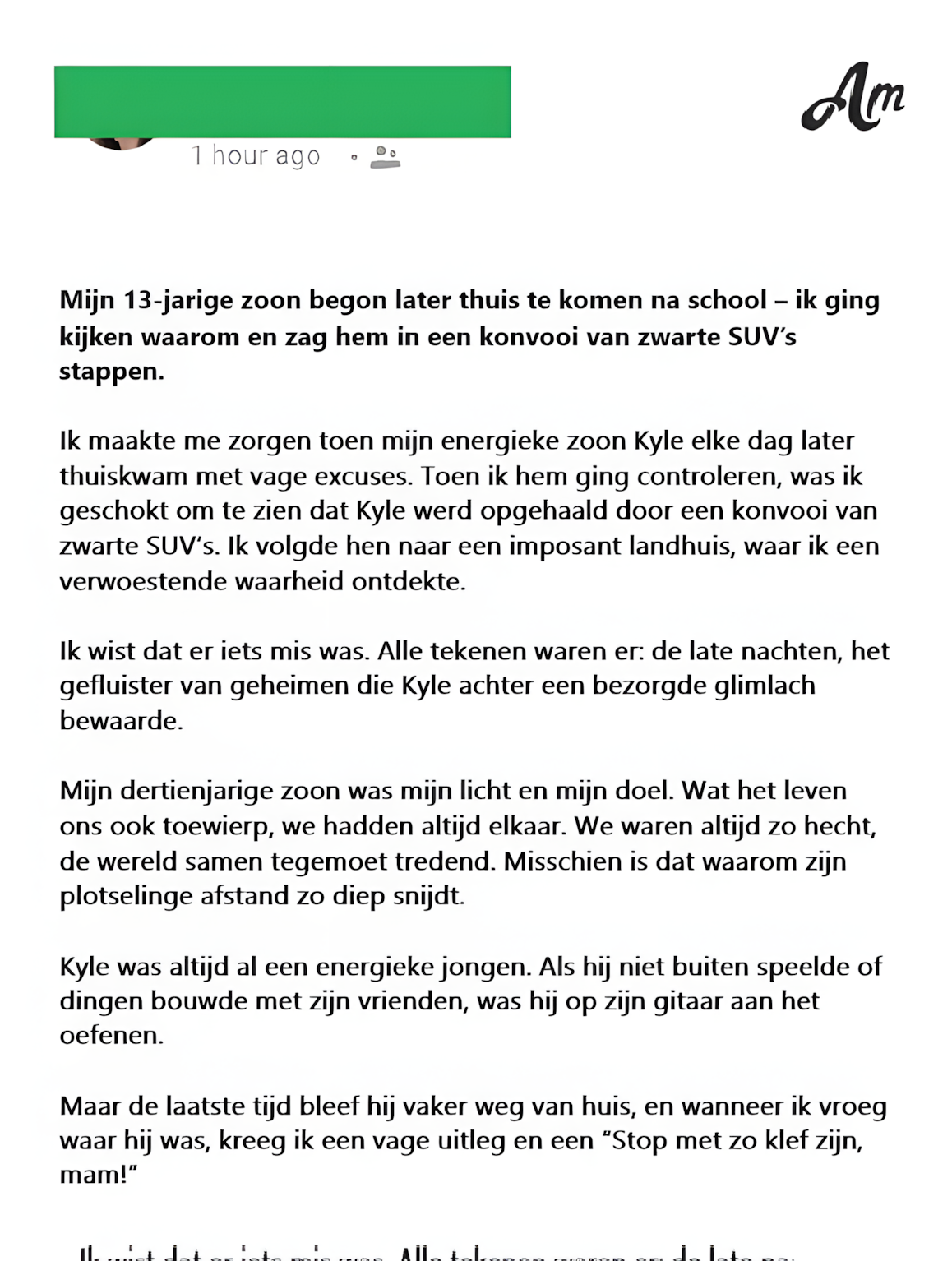 Ik maakte me zorgen toen mijn energieke zoon Kyle elke dag later thuiskwam met vage excuses. Toen ik hem ging controleren, was ik geschokt om te zien dat Kyle werd opgehaald door een konvooi van zwarte SUV’s. Ik volgde hen naar een imposant landhuis, waar ik een verwoestende waarheid ontdekte.