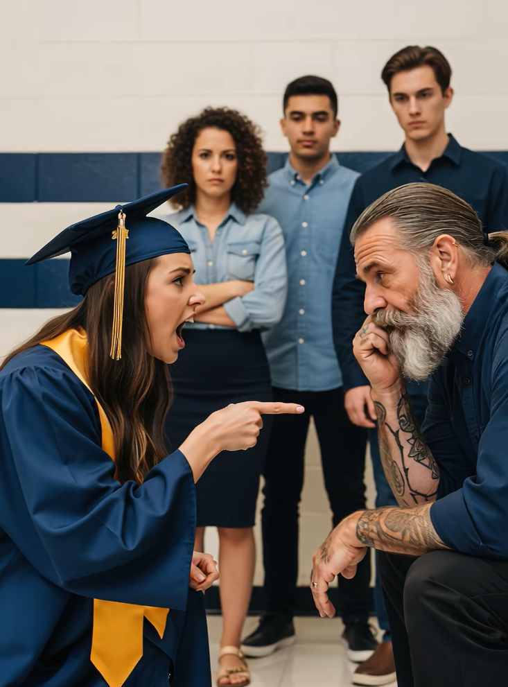 Mijn dochter was boos op mij omdat ik bij haar diploma-uitreiking aanwezig was, omdat ik een motorrijder ben, met een lange baard, tatoeages, leren vest en al.