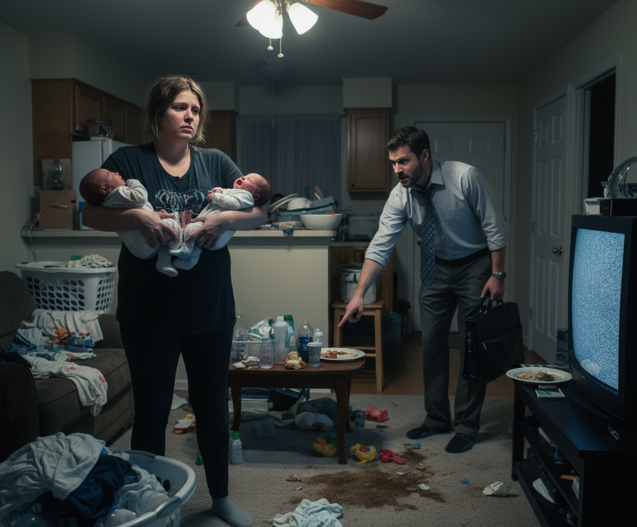 Na mijn spoedkeizersnede van mijn tweeling begon mijn man kritiek te leveren op mijn huishouding en eiste hij thuisgekookte maaltijden, ook al was ik herstellende en zorgde ik dag en nacht voor onze twee pasgeboren baby’s. Toen hij de zorg voor onze kinderen een « vakantie » noemde, besloot ik hem precies te laten zien hoe mijn dagen eruit zagen.