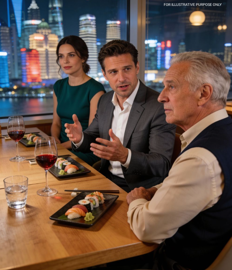 De nacht dat mijn leven eindelijk uit elkaar vloog, zag San Francisco er onwerkelijk uit—glazen torens die gloeiden, de Bay Bridge was geborduurd met witte koplampen als aderen. Als iemand door het raam van dat strakke Japanse restaurant aan Market Street had gekeken, had diegene een gewoon Amerikaans stel en een beheerste Japanse directeur een elegante maaltijd zien deelen. Een zakendiner. Niets meer.