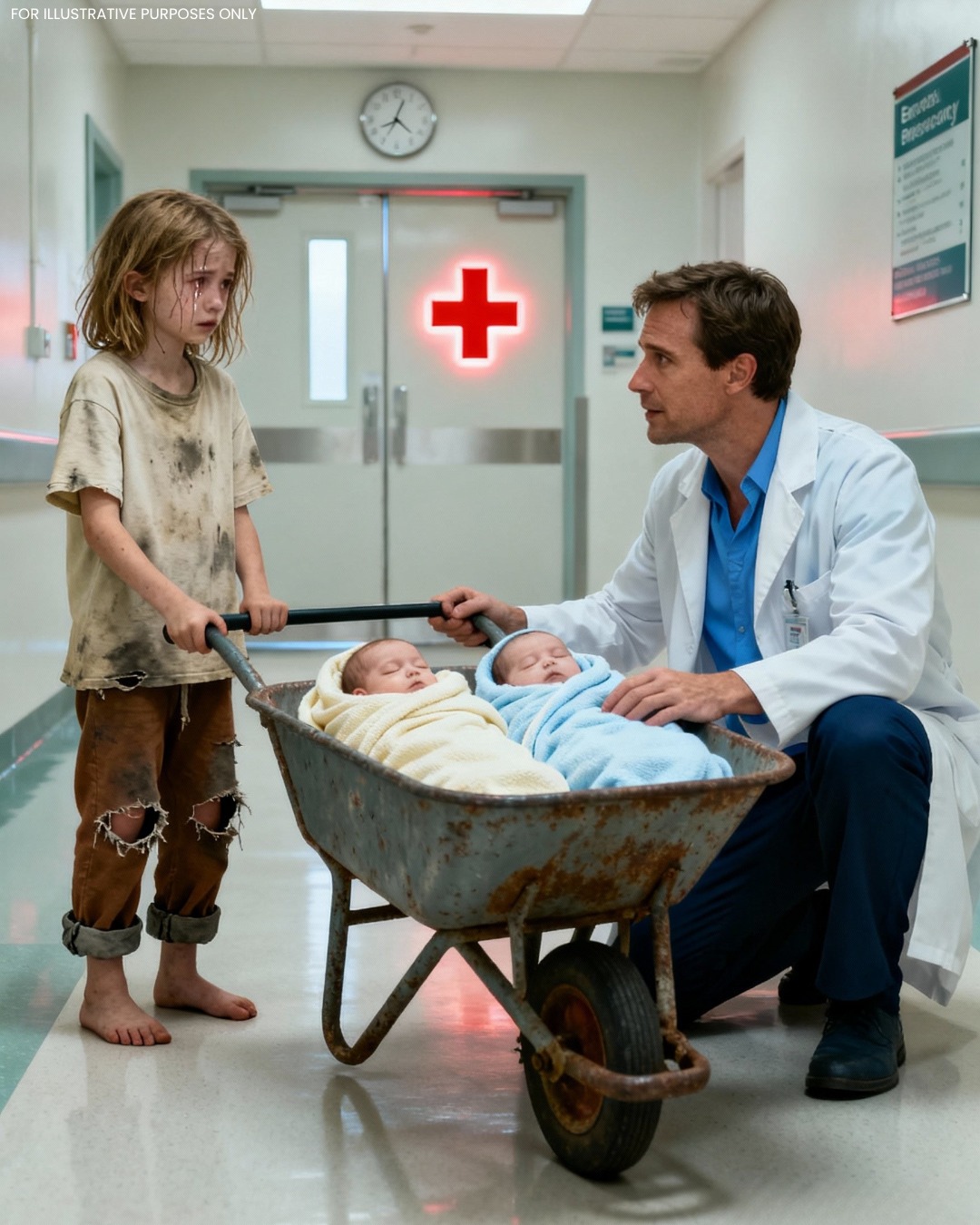 De spoedeisende hulp van het St. Helena Ziekenhuis was altijd druk, maar niemand had ooit zoiets gezien als wat er die grijze ochtend door de schuifdeuren naar binnen kwam. Een klein meisje, op blote voeten en trillend, duwde een gedeukte kruiwagen de hal in. Binnen, gewikkeld in een oud gordijn, lagen twee pasgeborenen met gezichtjes zo bleek als kaarslicht, maar nog steeds ademend. Haar haar plakte aan haar wangen, haar knieën trilden bij elke stap en haar stem brak als ze sprak.