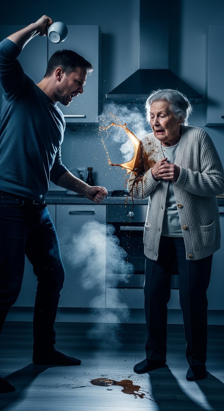 Maar hij was nog niet klaar. Hij pakte zijn mok koffie, die nog steeds dampte, en gooide hem in een plotselinge, gewelddadige beweging naar me toe. De hete vloeistof spatte over mijn schoot, doorweekte mijn oude blauwe nachthemd en verbrandde mijn huid. Ik hapte naar adem, niet van de pijn, maar van de schok. De mok kletterde op de grond. Ik keek naar de bruine vlek die zich over de stof verspreidde, mijn handen trilden. De kinderen staarden me aan, hun ogen wijd open, hun monden open.