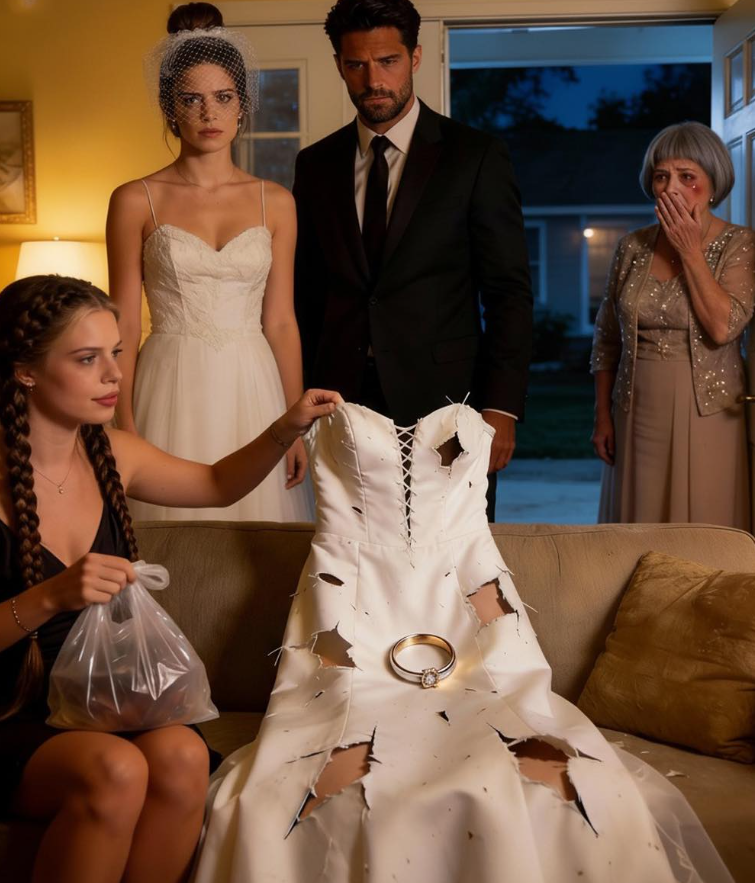 Ik heb de nacht voor mijn bruiloft niet geslapen. Ik zat op de grond met de jurk uitgespreid voor me alsof ik op een plaats delict was. De gaten waren geen toevallige scheuren. Ze waren opzettelijk: ze stonden op plekken waar het onmogelijk was om het in het openbaar te dragen. Wie dit ook gedaan heeft, wilde me niet alleen pijn doen. Ze wilden me vernederen.