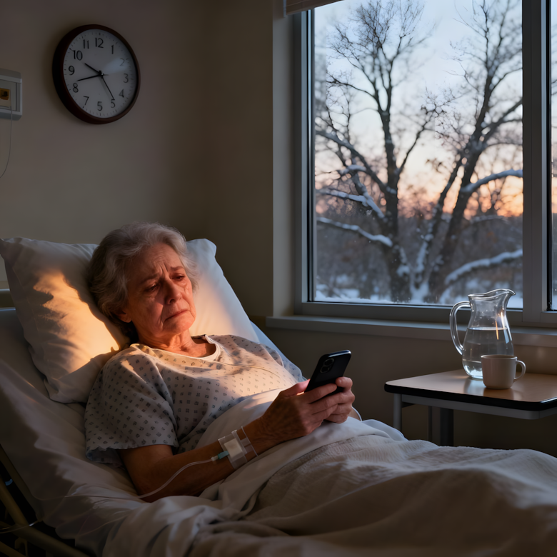 Even was ik daar, waar het ongeluk was gebeurd, en de wereld kromp ineen tot het steriele gezoem van de automatische deuren. Mijn stoel trilde toen ik mijn telefoon in mijn jaszak stopte. Veertig jaar geleden bouwden mijn overleden man en ik een huis dertig kilometer verderop. We hebben Ethan erin opgevoed. Nu, na een hartoperatie, is zelfs een ritje er vandaan onmogelijk.
