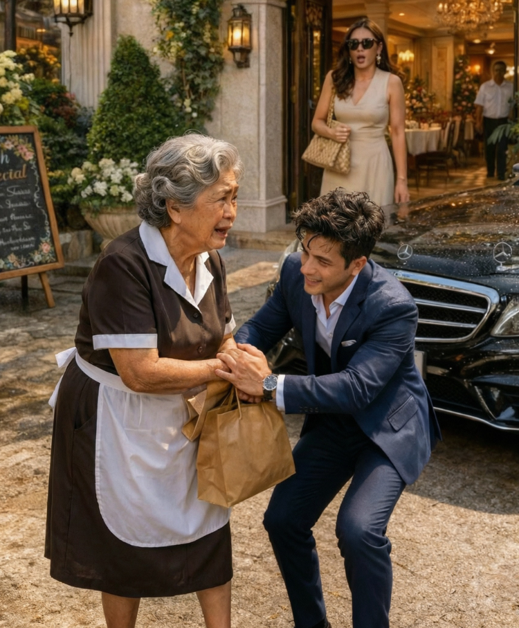 Ze gingen naar binnen. Iedereen keek op—obers, personeel en klanten—toen ze hun baas zelf een oudere dienstmeid zagen helpen.