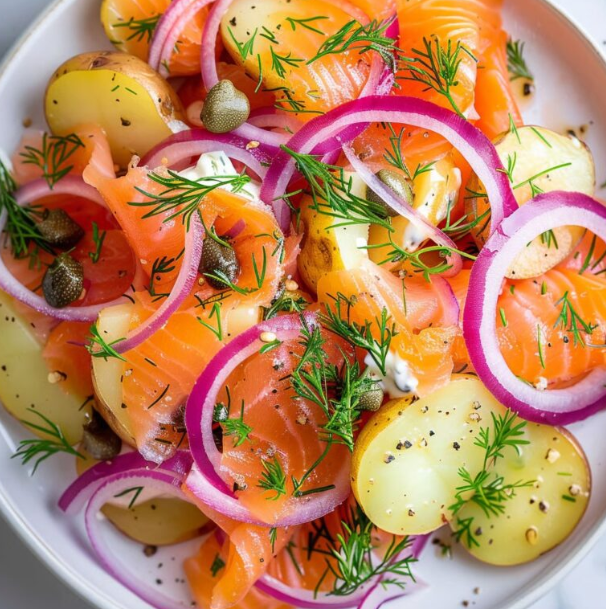 Deze Noordse zomersalade met gerookte zalm en aardappelen is zo’n gerecht dat op zonnige dagen alle tafels betovert, met een combinatie van versheid, snelheid en hebzucht. Deze combinatie van kleine aardappelen en gerookte zalm met mariene tonen verandert zelfs een eenvoudig ontbijt in een evenement. Bereid het voor op een elegante picknick of een licht diner, het zal altijd een statement maken.