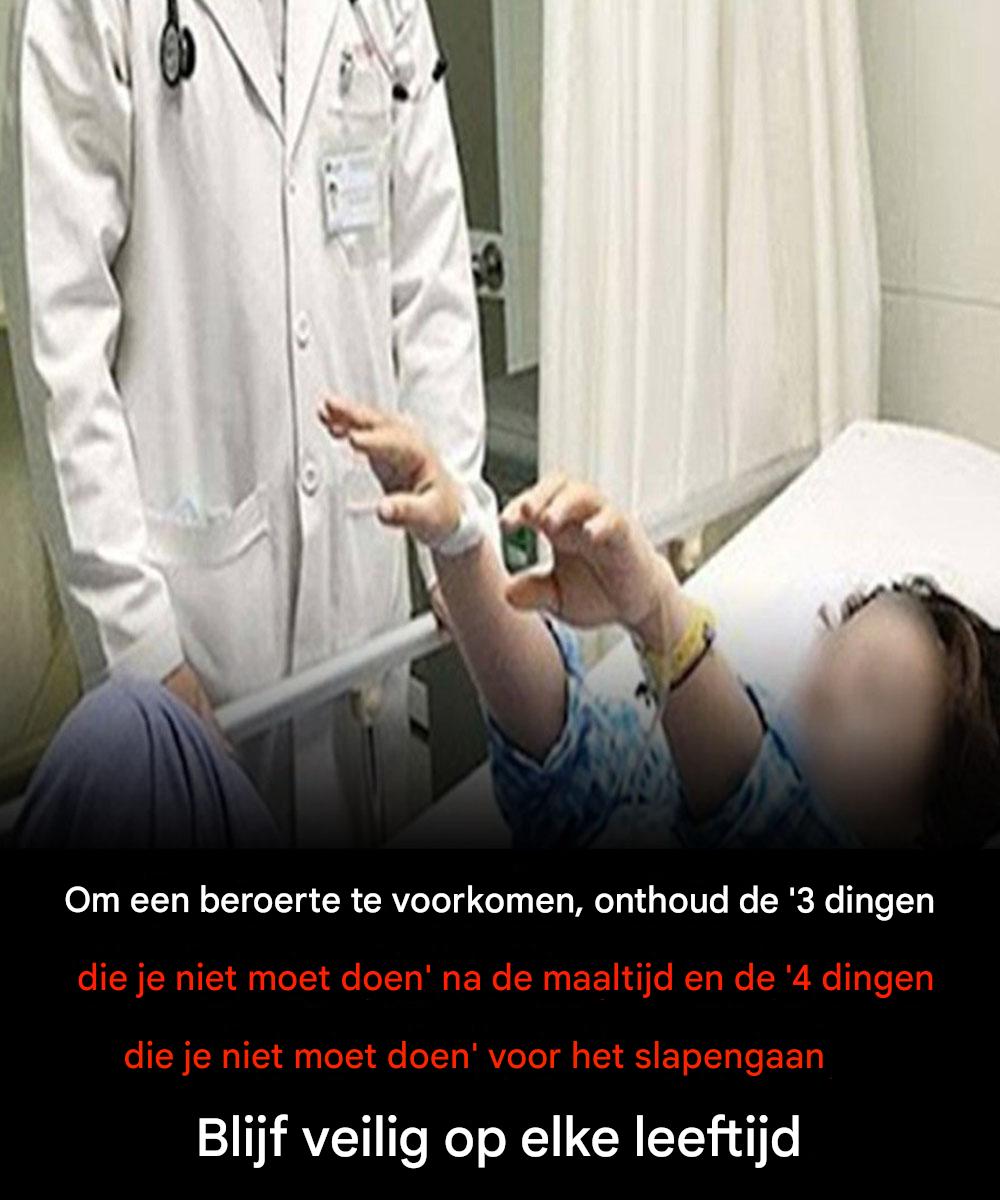 Een beroerte is wereldwijd een van de belangrijkste doodsoorzaken en oorzaken van langdurige invaliditeit. Het kan plotseling en onverwacht optreden, met vaak verwoestende gevolgen. Een beroerte is echter niet volledig onvermijdelijk. Met goede gewoonten, met name wat betreft eten en slapen, kan het risico op een beroerte aanzienlijk worden verminderd. Een eenvoudige maar effectieve regel is: « 3 dingen die je niet moet doen » na de maaltijd en « 4 dingen die je niet moet doen » voor het slapengaan. Deze gewoonten zullen je helpen je fysieke en mentale gezondheid te behouden – ongeacht je leeftijd.