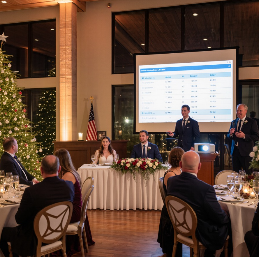 Mensen lachten. Zijn medewerkers. Zijn golfpartners. Ouders die ik nooit had ontmoet, maar die op de een of andere manier een uitnodiging voor mijn eigen bruiloft hadden gekregen.