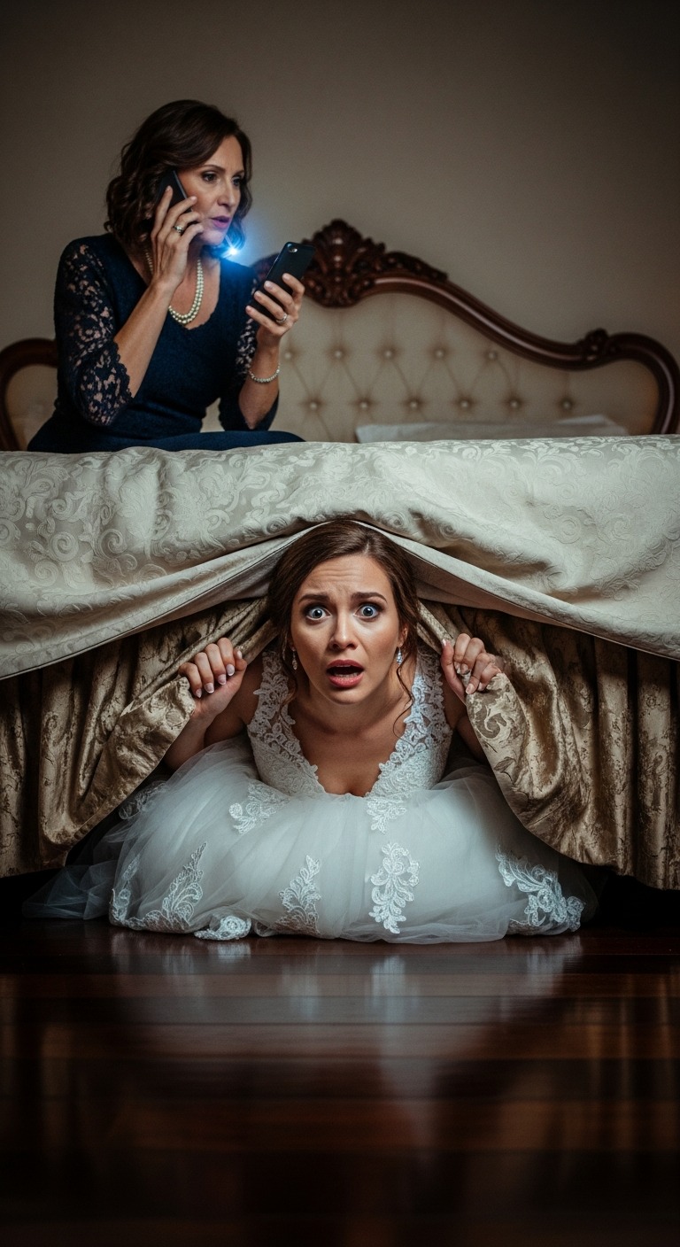 Ik hield mijn adem in, plat tegen de koele hardhouten vloer onder het enorme mahoniehouten bed gedrukt, en kon nauwelijks een lach onderdrukken. De witte trouwjurk, die ik sinds de ceremonie nog steeds niet had uitgedaan, golfde als een wolk om me heen, de sluier verstrikt in de boxsprings boven mijn hoofd. Als Marcus me zo ziet, als een klein engeltje dat onder het bed vandaan klimt, krijgt hij een hartaanval, dacht ik, terwijl ik me voorstelde hoe mijn kersverse man de kamer binnenkwam. Hij zou elke hoek afzoeken en bezorgd roepen tot ik in een kreet uitbarstte: « Verrassing! » En we zouden lachen tot we huilden, net als vroeger.