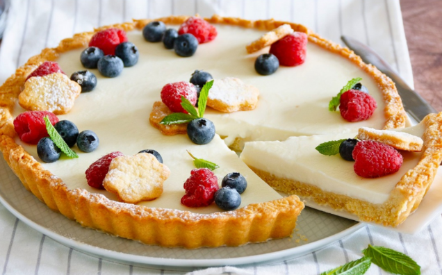 Een panna cotta taart is een elegant en heerlijk dessert dat verschillende texturen combineert: een zachte, romige panna cotta bovenop een goudbruine deegbodem zonder boter, afgewerkt met frisse bosvruchten en een vleugje munt. Het is ideaal als verfijnde afsluiter van een diner, maar ook perfect als lichte snack voor warme dagen. Dankzij de eenvoudige stappen en de mogelijkheid om vooraf te bereiden, is dit een dessert dat altijd indruk maakt.