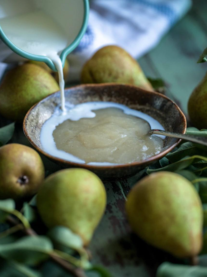 Op dit moment hangen de peren rijkelijk aan de bomen in de tuin, en ik probeer er zoveel mogelijk van te gebruiken. Eén van mijn favoriete manieren om ze te verwerken is deze eenvoudige, zachte perencrème. Het is een heerlijk mild en fruitig gerecht dat je zowel warm als koud kunt eten — ideaal als ontbijt, tussendoortje of zelfs als een lichte dessertoptie. De structuur is fluweelzacht en de smaak puur, met een subtiel vleugje vanille dat de peren mooi versterkt.