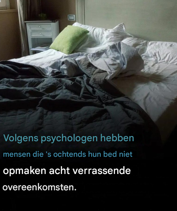 Volgens psychologe Leticia Martín Enjuto kan deze ogenschijnlijk onschuldige keuze — zorgvuldig de lakens vouwen of ze gekreukt laten — eigenlijk veel zeggen over je persoonlijkheid, mindset en emotionele patronen. Ze gelooft dat « achter elk eenvoudig gebaar een verhaal schuilgaat ». Een handeling die zo alledaags is als het niet opmaken van je bed kan psychologische betekenissen hebben die verband houden met je waarneming van structuur, controle en zelfexpressie.