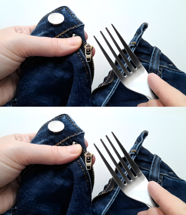 Deze methode is ideaal voor jassen of kledingstukken met een langere rits. Je hebt maar één vork nodig: