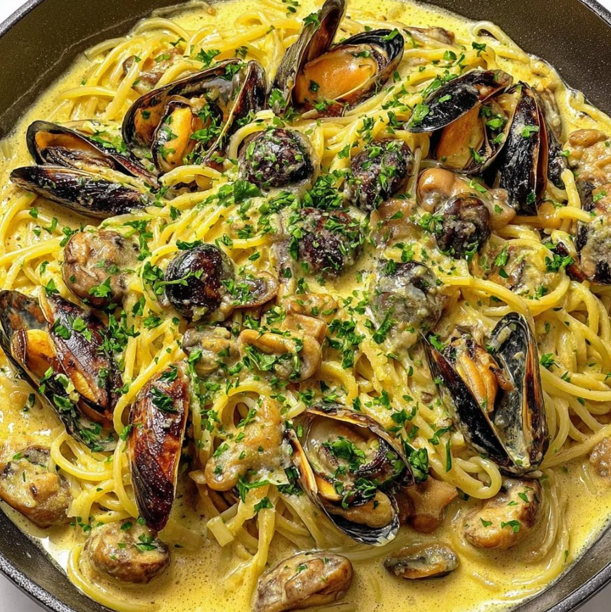 Deze romige spaghetti met mosselen is een eenvoudig maar elegant gerecht dat perfect is voor een maaltijd voor twee. De zoetheid van de room wordt gecombineerd met de jodiumsmaak van de mosselen, versterkt door knoflook, sjalot en een vleugje witte wijn. Een toegankelijk recept, snel te bereiden en ideaal om verse producten te benadrukken.