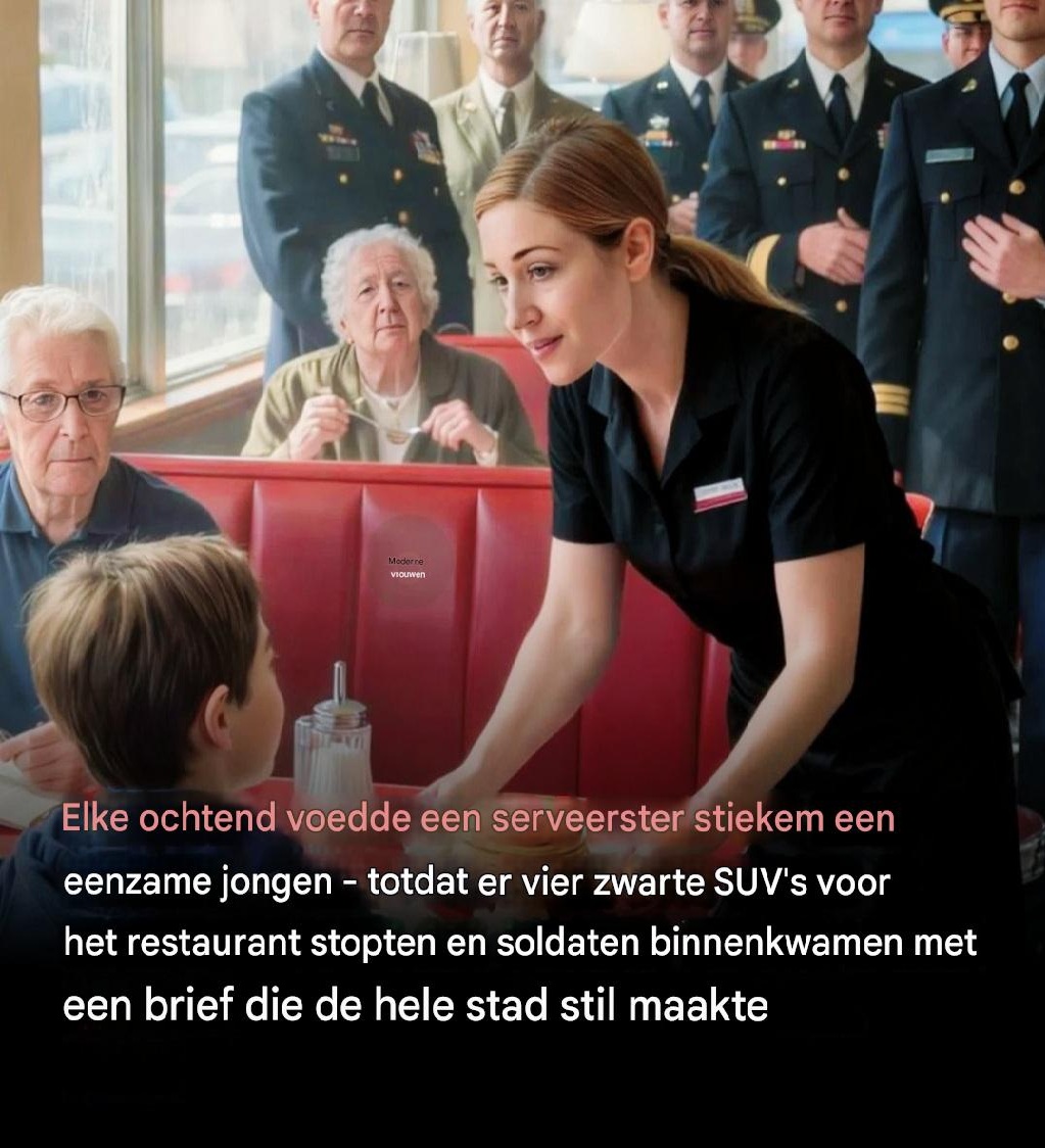 Die eerste ochtend bestelde hij alleen een glas water. Jenny bracht het met een glimlach en een papieren rietje. Hij knikte zonder op te kijken. De tweede ochtend was hetzelfde. Aan het einde van de week realiseerde ze zich dat hij elke dag precies om kwart over zeven kwam, veertig minuten bleef en vervolgens zonder eten naar school vertrok.