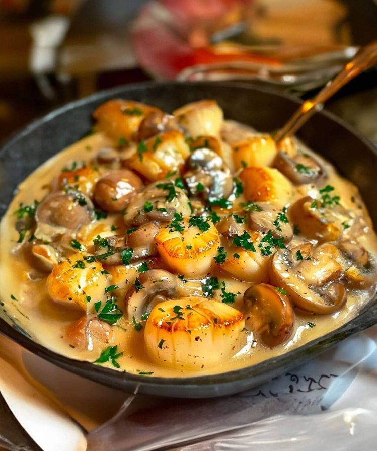 De blanquette van sint-jakobsschelpen met champignons is een verfijnd en delicaat gerecht, dat de finesse van mariene smaken combineert met de romigheid van een romige saus. Geïnspireerd door de grote klassiekers van de Franse keuken, onderscheidt dit recept zich door zijn balans en zoetheid, terwijl het eenvoudig te maken blijft.