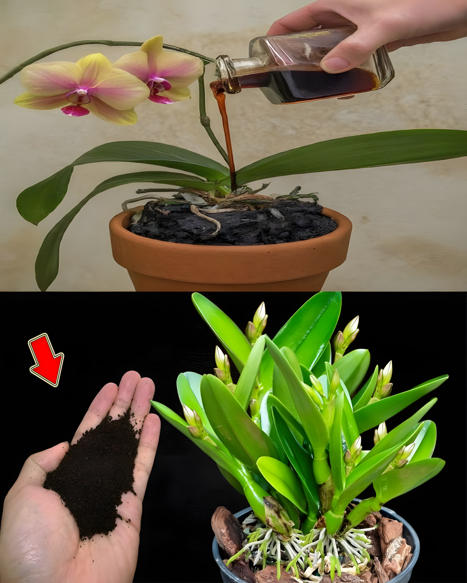 Slechts een theelepel en plotseling bloeit de orchidee op wonderbaarlijke wijze met vele bloemen