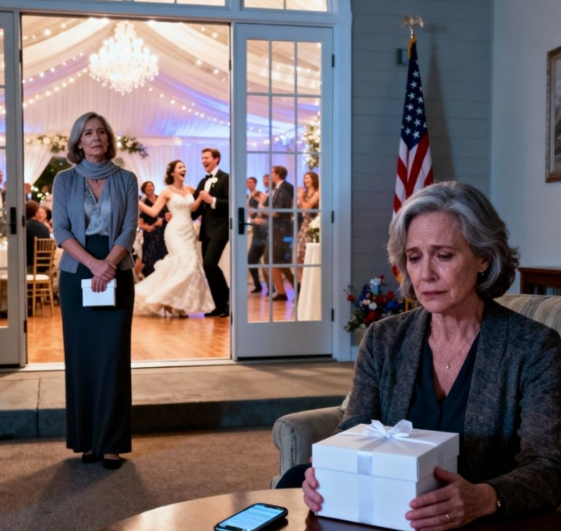 « Kun je tegen de badkamermuur leunen zodat je de trouwfoto’s niet verpest door je leeftijd? » vroeg mijn nieuwe schoondochter met een bedrieglijk honingzoete stem, terwijl ze haar sluier rechtzette. Ik glimlachte, pakte mijn elegant ingepakte cadeau van tafel en verliet de ontvangstruimte. Toen ze de inhoud van de doos ontdekten, begonnen de oproepen om 3 uur ‘s nachts binnen te stromen en sindsdien zijn ze niet gestopt.