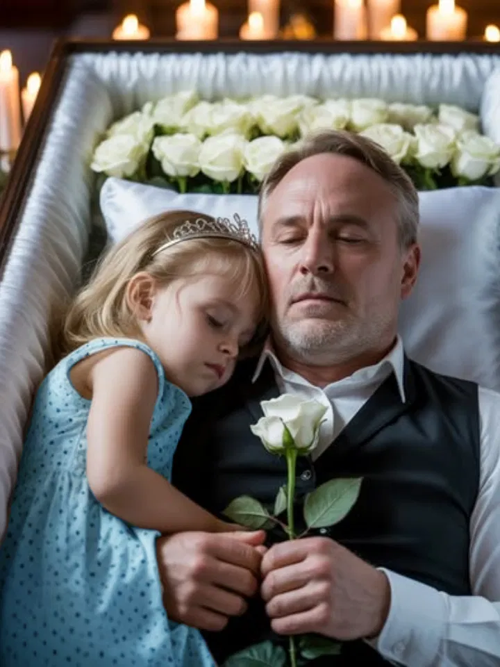 Tijdens de wake van mijn vader bleef mijn achtjarige zusje bij zijn kist: stil, roerloos. We dachten dat verdriet haar hart had verhard… tot die nacht, toen ze naast hem ging liggen, er iets gebeurde wat niemand zich had kunnen voorstellen.