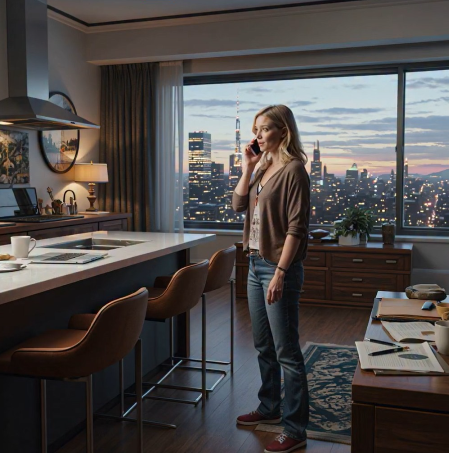 Ik heb tientallen appartementen bekeken. Studio’s in de vorm van dozen met schimmel in de hoeken. Elegante lofts met zo’n hoge huur dat mijn hart zonk bij het lezen van de advertentie. Totdat ik het eindelijk vond: een studio-appartement op de vijfde verdieping in een roodstenen huurhuis vlakbij het centrum. Hoge plafonds. Nieuwe ramen. Oude houten vloeren die rustgevend kraakten. Een smal balkon vanwaar je de lichten van de stad kon bewonderen, als je goed naar buiten leunde. Het was niet groot, maar het was van mij. Ik tekende de hypotheek met trillende handen, mijn naam in zwarte inkt, geen medeondertekenaar, geen ouderlijk vangnet.