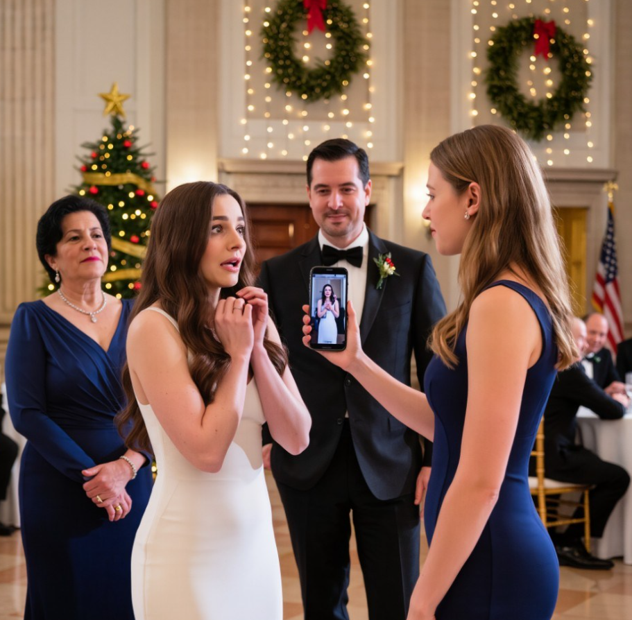 Mijn zus Brooke draaide zich om in haar witte jurk en verstijfde. Haar stem trilde.