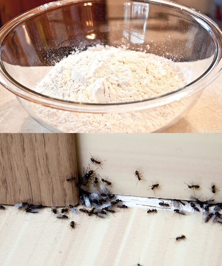 Als je last hebt van mieren, strooi dan een laagje bloem op de plek waar ze in- en uitlopen. Mieren houden niet van de smaak en textuur van bloem, dus ze zullen er ver van wegblijven.
