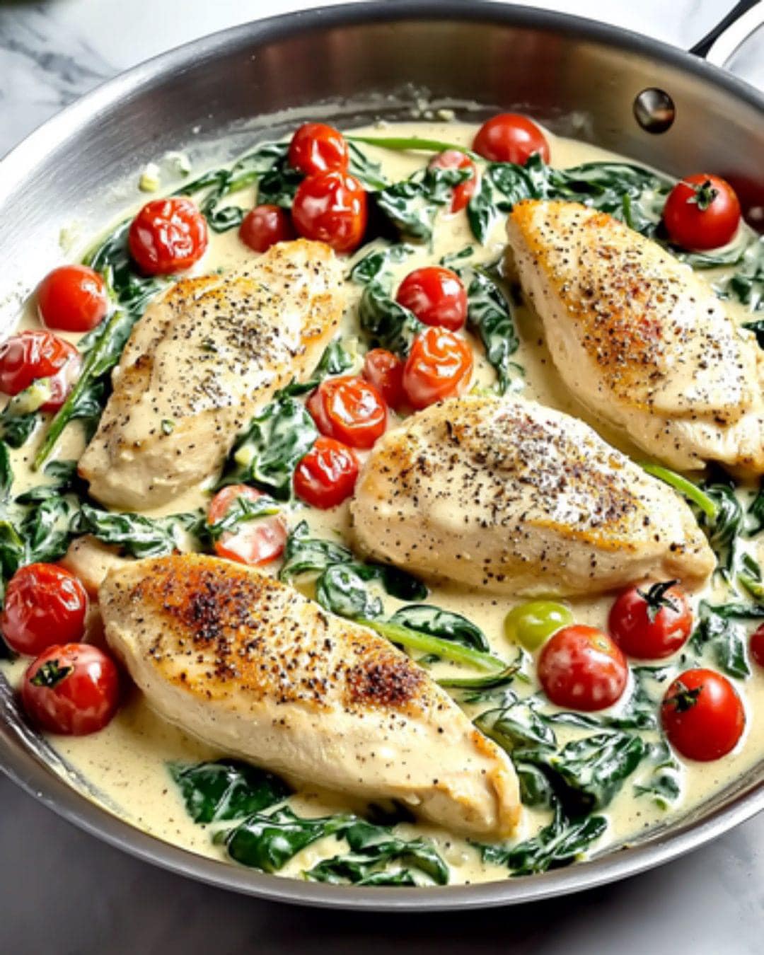 Een klassiek Italiaans gerecht waarin malse kipfilet, sappige cherrytomaten en verse spinazie samenkomen in een heerlijke romige Parmezaansaus. Dit smaakvolle recept is eenvoudig te maken en perfect voor een doordeweekse maaltijd of een gezellig etentje! 😍🇮🇹