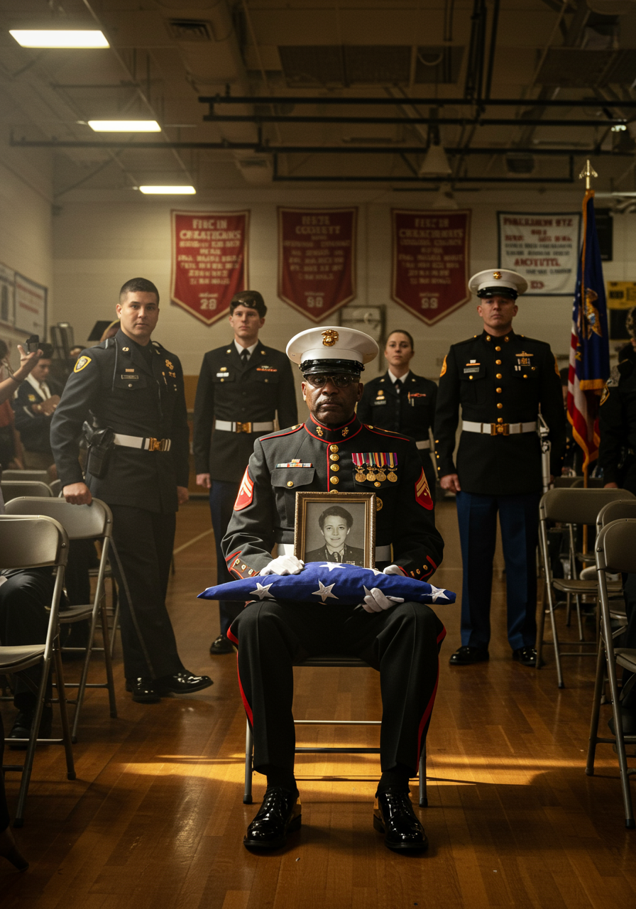 Binnen in de gymzaal was het rumoerig van de gezinnen, de geur van popcorn en de glinstering van zilveren spandoeken met « Class of 2024 ». Solomons aanwezigheid in zijn nette uniform trok blikken – sommigen respectvol, anderen op hun hoede. Maar hij was eraan gewend. Hij bewoog zich met de kalme, rechtopstaande houding van een man die de wereld vanuit te veel gevaarlijke hoeken had bekeken.