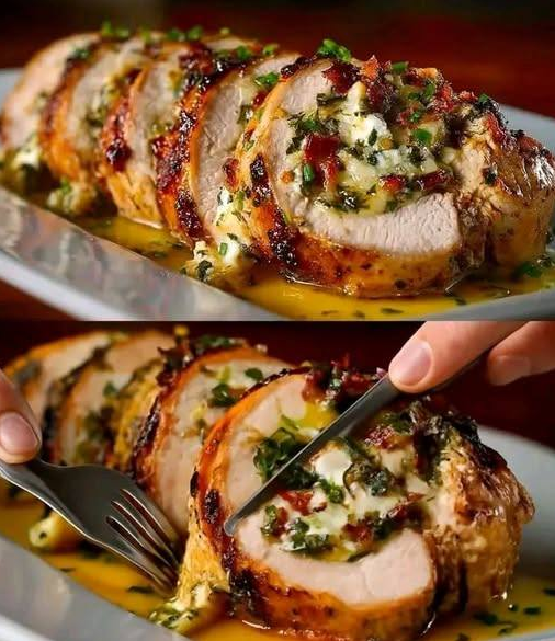 Als je op zoek bent naar een elegant, sappig hoofdgerecht dat je gasten zal verrassen, is deze gevulde varkensbroodje precies iets voor jou. Het is niet zomaar een roast, het is een echte ervaring. Mals varkensvlees wikkelt de rijke, romige vulling om, waardoor een contrast van smaken en texturen ontstaat dat vanaf de eerste hap echt magisch is. Vergeet droge brandingen: het geheim ligt in het rollen ervan, wat vocht en vulling behoudt.
