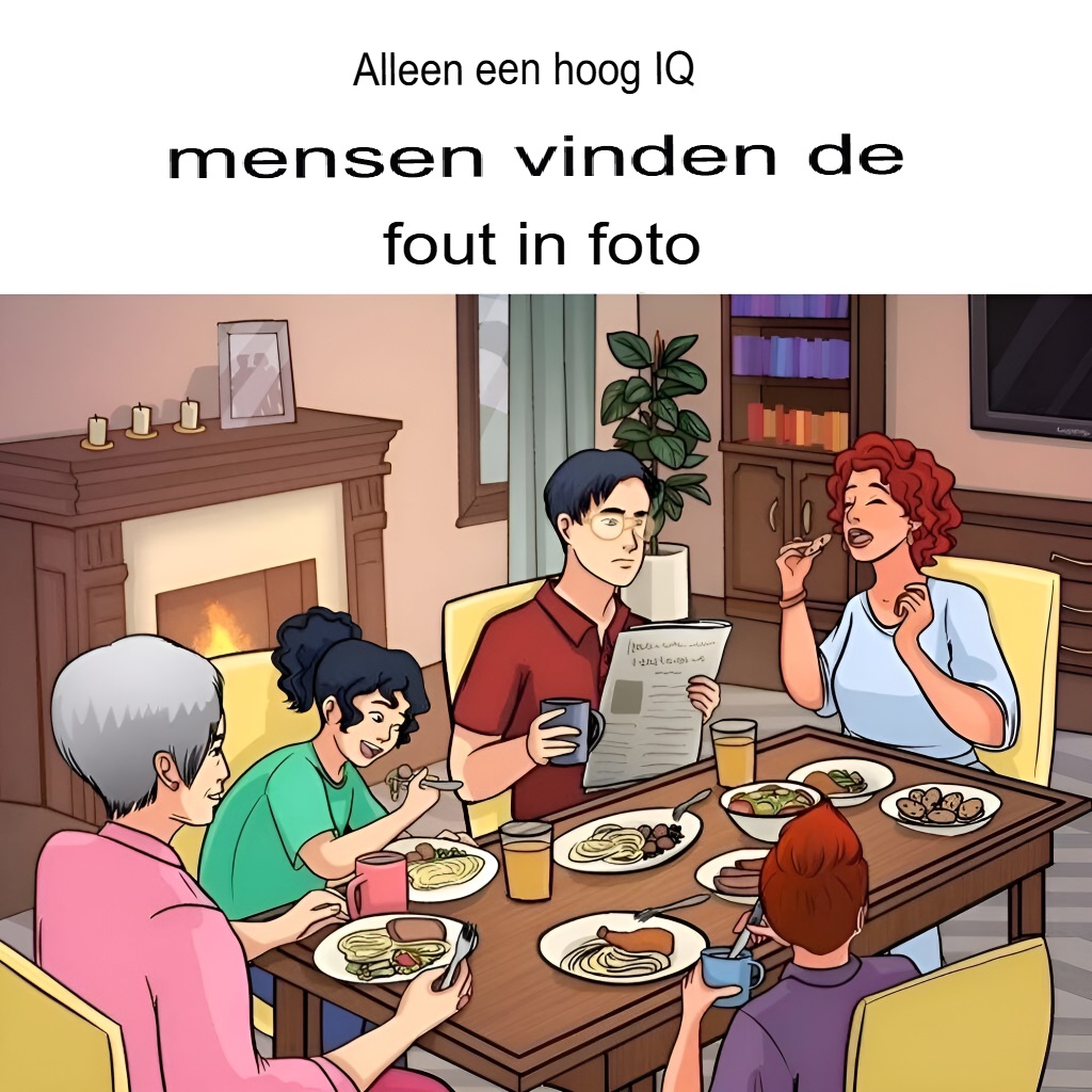 Vind binnen 10 seconden de fout op de foto van het familiediner!