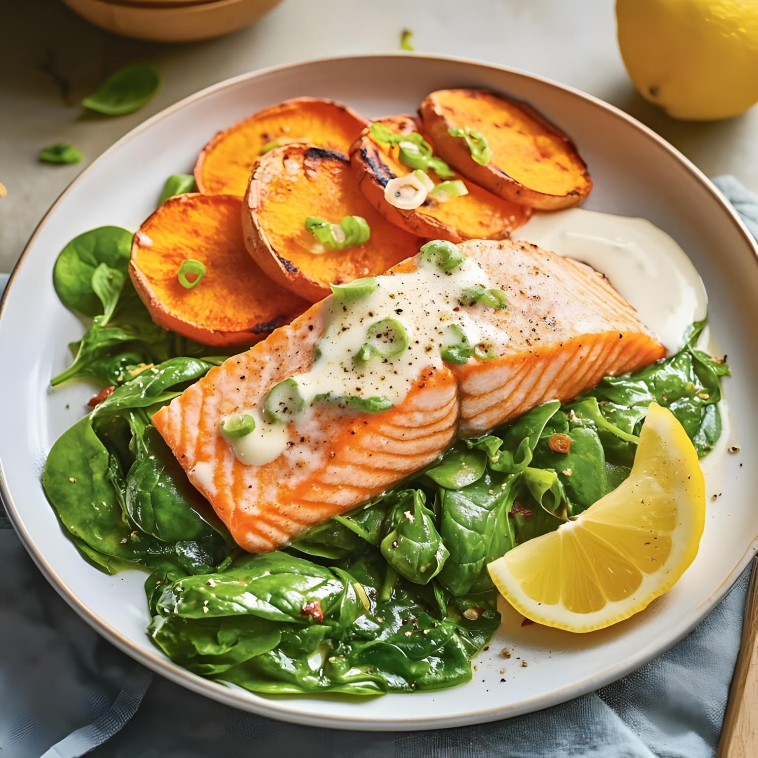✨ Een gezond en heerlijk gerecht boordevol smaak! De combinatie van zalm, romige spinazie en zoete aardappelen zorgt voor een voedzame en verrukkelijke maaltijd. Perfect voor een doordeweekse avond of een speciaal diner! ✨